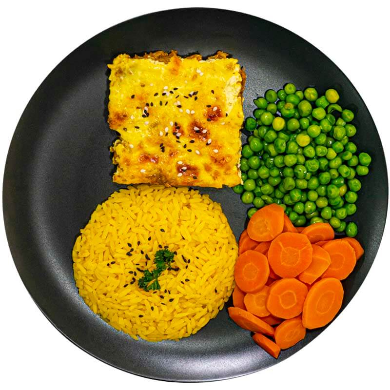 2 x Beef Bobotie with Yellow Rice and Peas and Carrots – 303g | 317 cals
