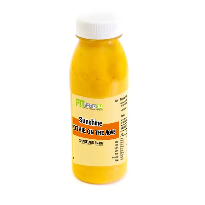 Sunshine: Orange, Lemon, Turmeric, Banana, Hemp Seeds, Carrots, Almond Milk & Yoghurt